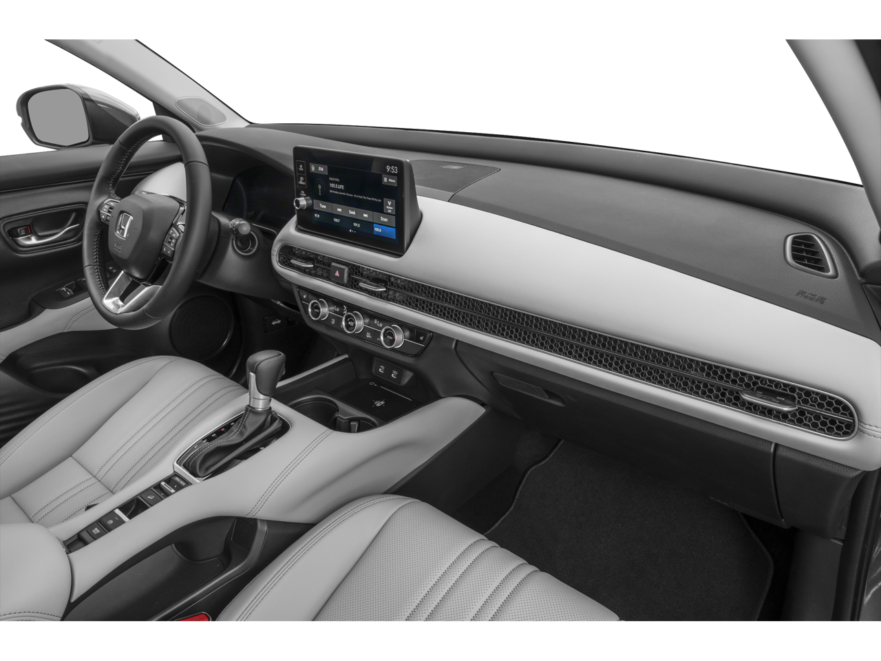 - Radio: Sistema de audio de 180 vatios c/8 altavoces -inc: pantalla táctil en color de 9 pulgadas, compatibilidad inalámbrica con Apple CarPlay y Android Auto, Bluetooth® HandsFreeLink y streaming de audio, puerto de datos/carga USB-C de 3,0 A en la consola delantera, cargador inalámbrico Qi para teléfonos, HondaLink y compensación de volumen sensible a la velocidad (SVC).