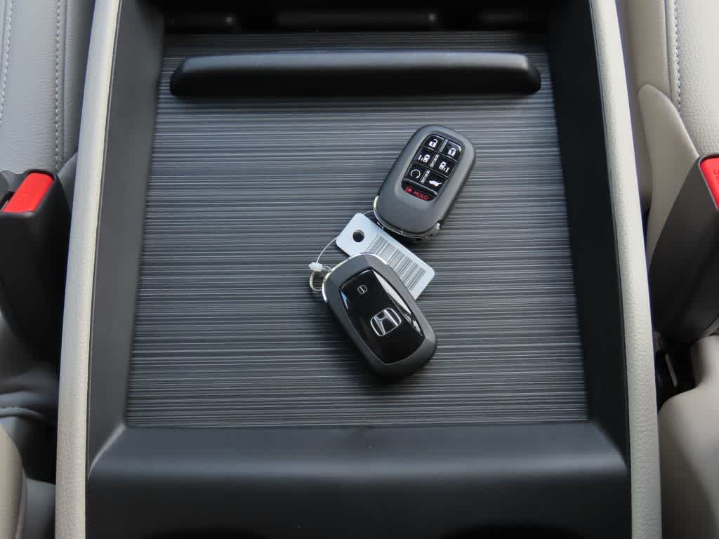 », tercera fila de asientos, techo corredizo, portón trasero eléctrico, aire acondicionado trasero, asiento del conductor calefactado, cámara de marcha atrás, radio por satélite, entrada para iPod/MP3, Bluetooth®, llantas de aluminio, arranque remoto del motor, aire acondicionado de doble zona, puerta eléctrica del cuarto pasajero, Apple CarPlay®. El Honda EX-L, con exterior en azul perla ahumado e interior en gris, cuenta con un motor V6 de 280 CV a 6000 rpm*. Alerón trasero, reproductor de MP3, apertura remota del maletero, cristales tintados.