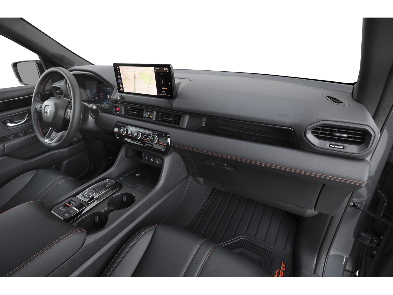 , tercera fila de asientos, navegación, techo corredizo, techo panorámico, tracción total, asientos individuales, portón trasero eléctrico, aire acondicionado trasero, asiento del conductor calefactado, asiento trasero calefactado, cámara de marcha atrás, entrada para iPod/MP3, sistema de comunicaciones a bordo, enganche de remolque, llantas de aluminio. El Honda TrailSport, con exterior en blanco perla platino e interior en negro con costuras naranjas, cuenta con un motor V6 de 285 CV a 6100 rpm*. Alerón trasero, reproductor de MP3, acceso sin llave, cristales tintados, apertura remota del maletero.