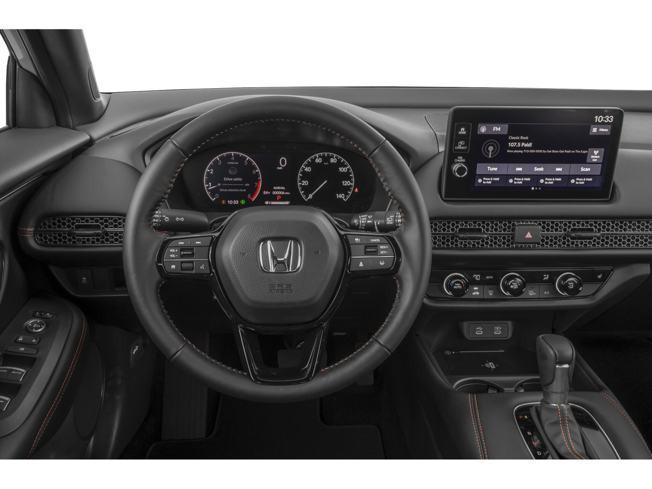 - Radio: sistema de audio de 180 vatios con 6 altavoces, que incluye: pantalla táctil en color de 9 pulgadas, compatibilidad inalámbrica con Apple CarPlay y Android Auto, Bluetooth® HandsFreeLink y transmisión de audio, puerto USB-C de 3,0 A para datos y carga en la consola delantera, cargador inalámbrico Qi para teléfonos móviles, HondaLink (algunas funciones de HondaLink son gratuitas; comprueba la compatibilidad del vehículo en https://mygarage.Honda.com/s/Hondalink-product-compatibility) y compensación de volumen sensible a la velocidad (SVC)
