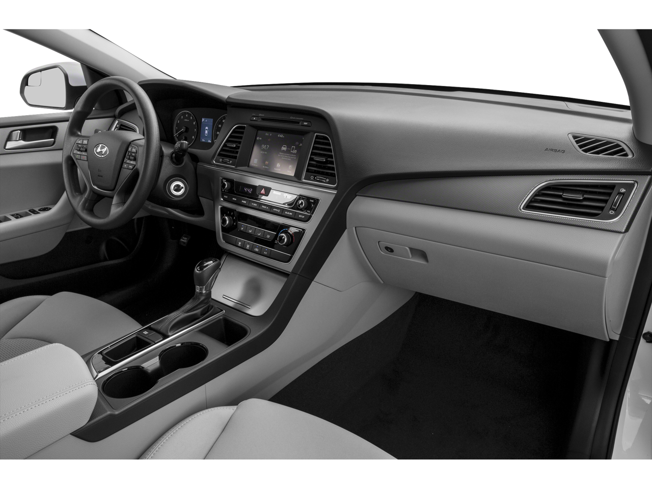 Radio por satélite, llantas de aluminio Hyundai 2.4L SE con exterior en blanco perla cuarzo e interior en gris, con motor de 4 cilindros y 185 CV a 6000 rpm*.