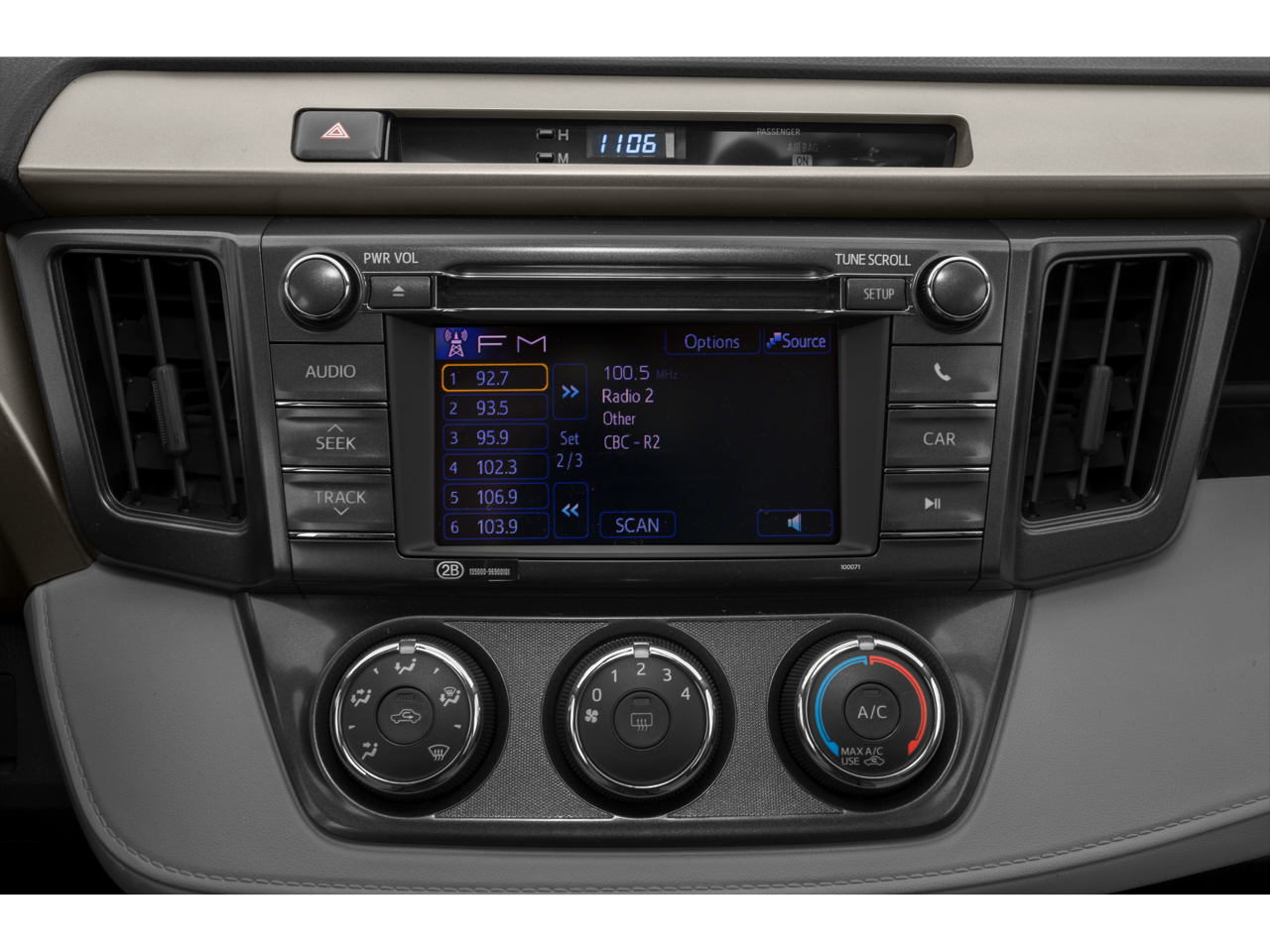 - Radio: Entune AM/FM/CD/MP3/WMA con 6 altavoces -inc: pantalla táctil de 6,1" con cámara de marcha atrás integrada, toma auxiliar de audio, puerto USB con conectividad y control de iPod, información del vehículo con ajustes personalizables, teléfono manos libres, acceso a agenda telefónica y streaming de música a través de tecnología inalámbrica Bluetooth®.