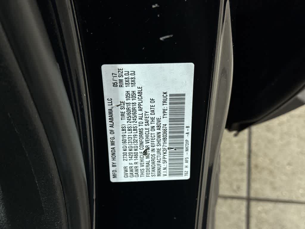 * Estudio APEAL (Automotive Performance, Execution and Layout) de JD Power * IIHS Top Safety Pick+ 2017 (cuando está equipado con Honda Sensing y faros específicos) * Premios al mejor valor de reventa de KBB.com 2017 * 10 coches nuevos favoritos de 2017 de KBB.com * NACTOY: Camioneta del Año en Norteamérica 2017 * 10 marcas más premiadas de KBB.com 2017 * Premios a la imagen de marca de KBB.com 2017