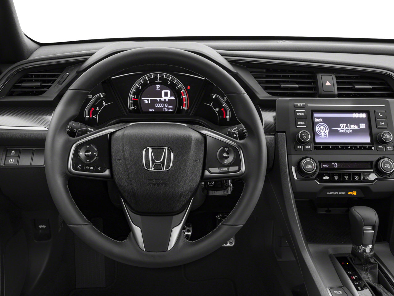 - Radio: sistema de audio AM/FM de 160 vatios, que incluye: 4 altavoces, pantalla LCD en color de 5 pulgadas, Bluetooth® HandsFreeLink, transmisión de audio por Bluetooth®, sistema de datos de radio (RDS), control de volumen sensible a la velocidad (SVC), puerto USB de 1,0 A en la parte delantera, mandos de audio iluminados en el volante y antena de aleta en el techo
