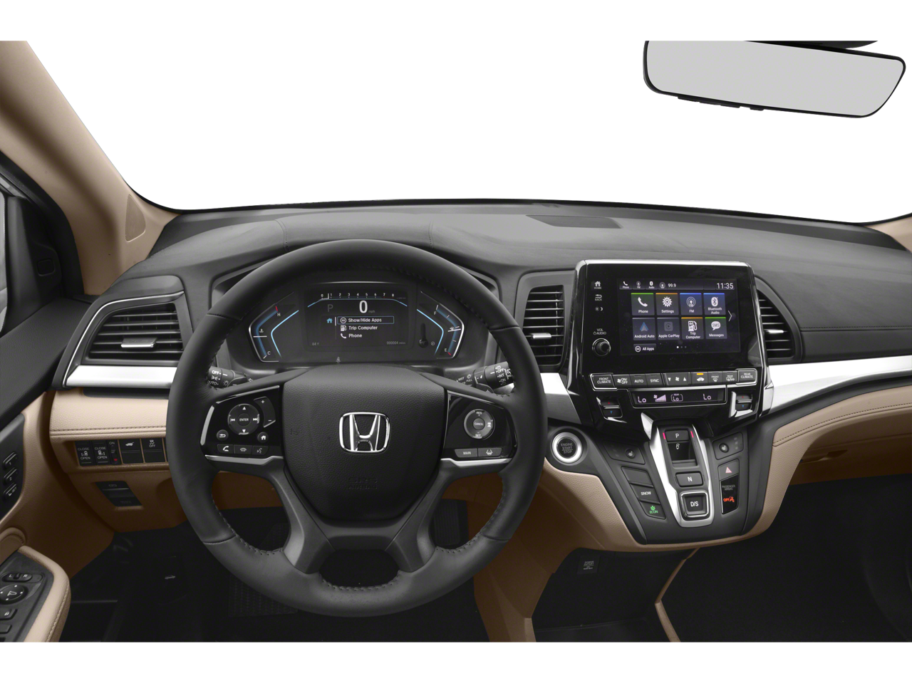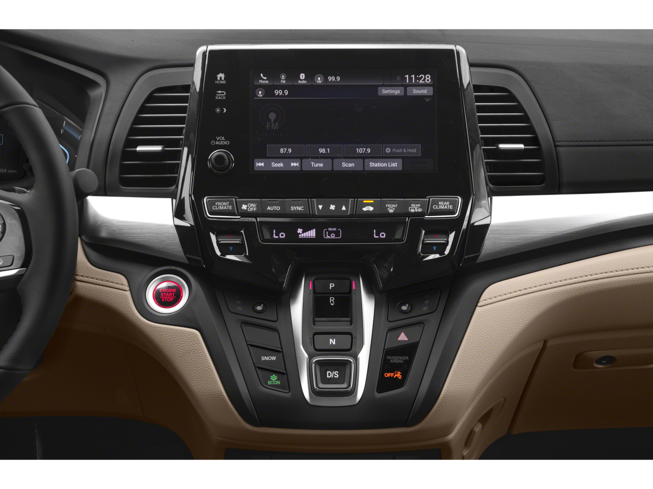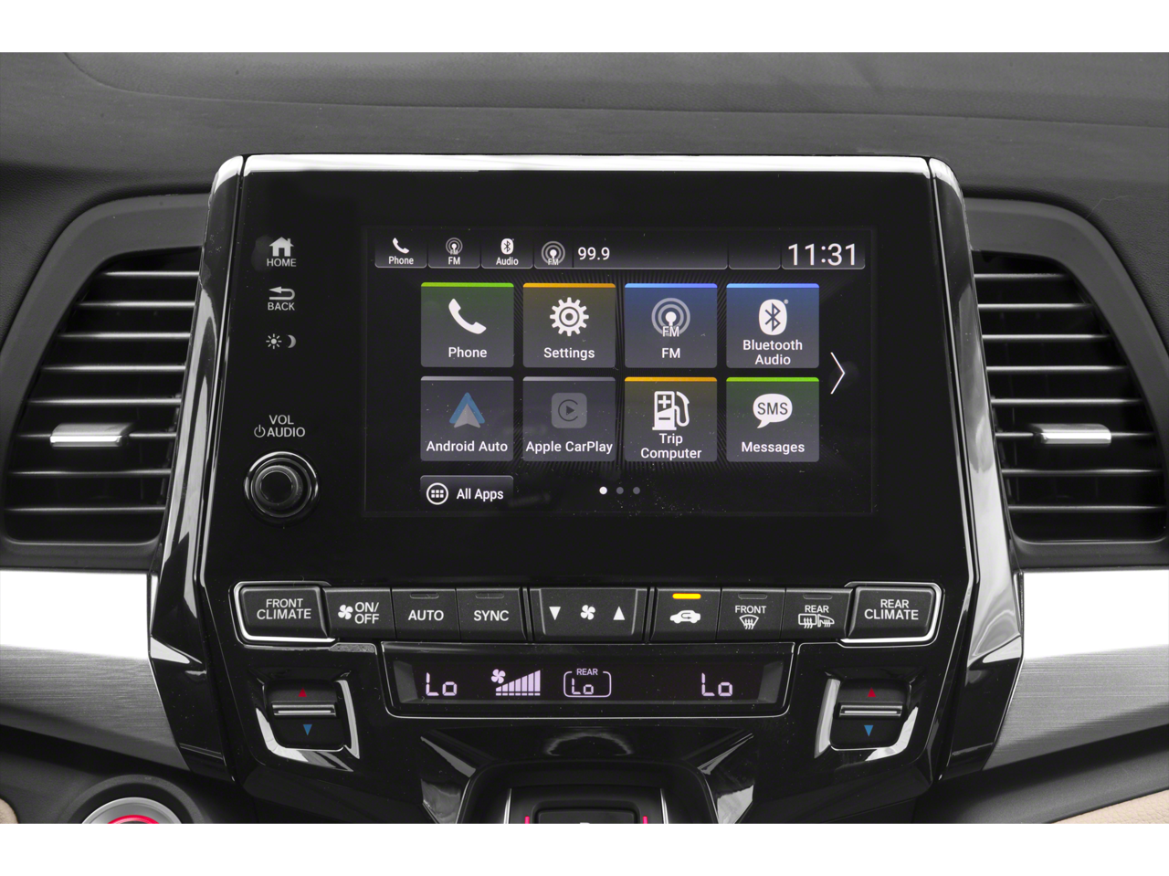 - Radio: Sistema de audio AM/FM/HD/SiriusXM de 160 vatios, que incluye: 6 altavoces, subwoofer, audio multizona, Bluetooth® HandsFreeLink, transmisión de audio por Bluetooth®, entrada auxiliar/MP3, sistema de datos de radio (RDS), función de mensajes de texto SMS, puerto de interfaz de audio USB de 2,5 amperios en la parte delantera, puerto de carga USB de 2,5 amperios en la consola central, 2 puertos USB de 2,5 amperios en la segunda fila, compatibilidad con el mando a distancia CabinControl, pantalla de audio de 8 pulgadas con pantalla táctil electrostática de alta resolución (720P) y ajustes personalizables, Apple CarPlay/Android Auto, controles de audio iluminados en el volante y antena negra tipo aleta montada en el techo.