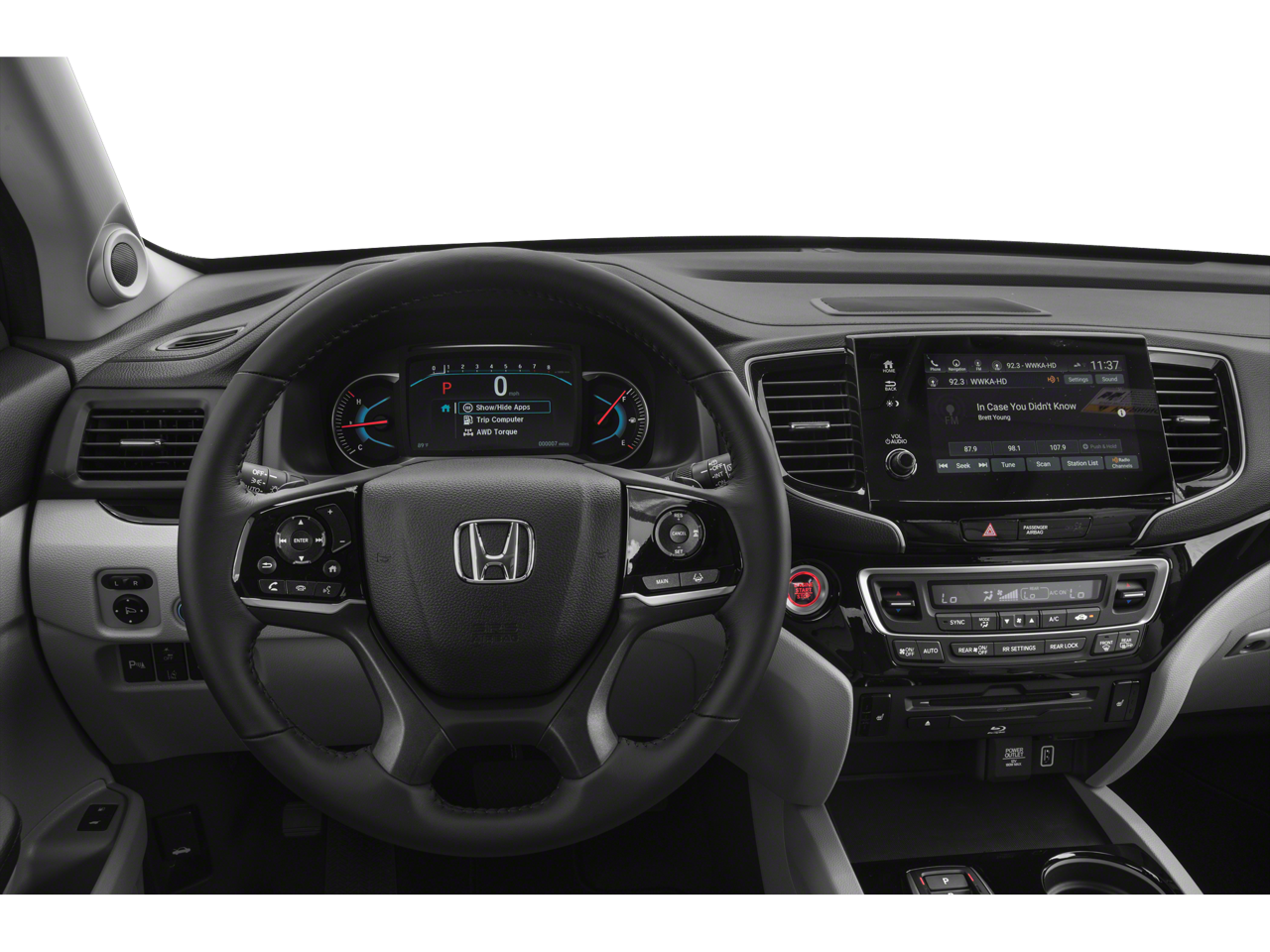 - Radio: Sistema de audio premium de 590 vatios, que incluye: 10 altavoces, subwoofer, pantalla de audio de 8 pulgadas con pantalla táctil electrostática de alta resolución y ajustes personalizables, consola delantera con interfaz USB para smartphone/audio de 2,5 amperios (1 puerto), Bluetooth® HandsFreeLink, transmisión de audio por Bluetooth®, entrada auxiliar/MP3, sistema de datos de radio (RDS), compensación de volumen sensible a la velocidad (SVC), puerto de carga USB de 2,5 amperios en la consola central (1 puerto) y en la segunda fila (2 puertos), HondaLink, compatibilidad con el mando a distancia CabinControl, integración con Apple CarPlay, integración con Android Auto, función de mensajes de texto SMS (compatible con determinados teléfonos con Bluetooth®, se aplican las tarifas de su operador de telefonía móvil; las leyes estatales o locales pueden limitar el uso de la función de mensajes de texto; utilice la función de mensajes de texto solo cuando las condiciones le permitan hacerlo de forma segura), Radio SiriusXM (los servicios SiriusXM requieren una suscripción después del periodo de prueba. Si decide continuar con el servicio SiriusXM al finalizar la suscripción de prueba, el plan que elija se renovará automáticamente y se le facturará según las tarifas vigentes en ese momento hasta que llame a SiriusXM al 1-866-635-2349 para cancelarlo. Consulte nuestro acuerdo con el cliente para conocer los términos completos en www.siriusxm.com. Las tarifas y la programación están sujetas a cambios. El servicio satelital XM solo está disponible para personas mayores de 18 años en los 48 estados contiguos de Estados Unidos y D.C. 2019 Sirius XMRadio Inc, Sirius, XM y todas las marcas y logotipos relacionados son marcas comerciales de SiriusXM Radio Inc. HD Radio, sistema de megafonía para el coche CabinTalk a través de auriculares, servicios de suscripción HondaLink (los servicios de suscripción HondaLink incluyen pruebas gratuitas de seguridad durante 1 año y una prueba de control remoto/conserje durante 3 meses. Es necesario registrarse para acceder a la prueba de control remoto/conserje y a determinadas funciones de seguridad. Al final de cada periodo de prueba, es necesario adquirir una suscripción para continuar con los respectivos servicios). Capacidad de punto de acceso Wi-Fi (requiere un plan de datos de AT&T) y audio multizona.