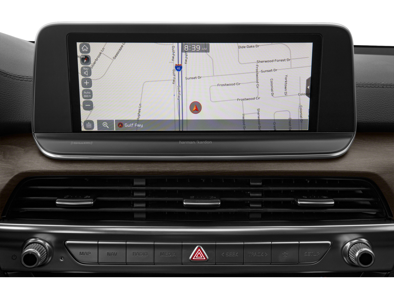 - Radio: Sistema de audio AM/FM/MP3/SiriusXM —incluye: sistema de infoentretenimiento UVO Link, con integración con smartphones para controles remotos y consulta del estado del vehículo a distancia; sistema de audio premium Harman/Kardon con 10 altavoces; restauración de audio digital Clari-Fi; QuantumLogic; compatibilidad con Android Auto y Apple CarPlay— pantalla táctil TFT (Thin Film Transistor) de 10,25", navegación, un total de 6 puertos de carga USB en todas las filas, conectividad inalámbrica Bluetooth® con reconocimiento de voz (se requiere un teléfono móvil compatible con Bluetooth® para utilizar la tecnología inalámbrica Bluetooth®) y conectividad Multi-Bluetooth, que permite conectar dos teléfonos simultáneamente