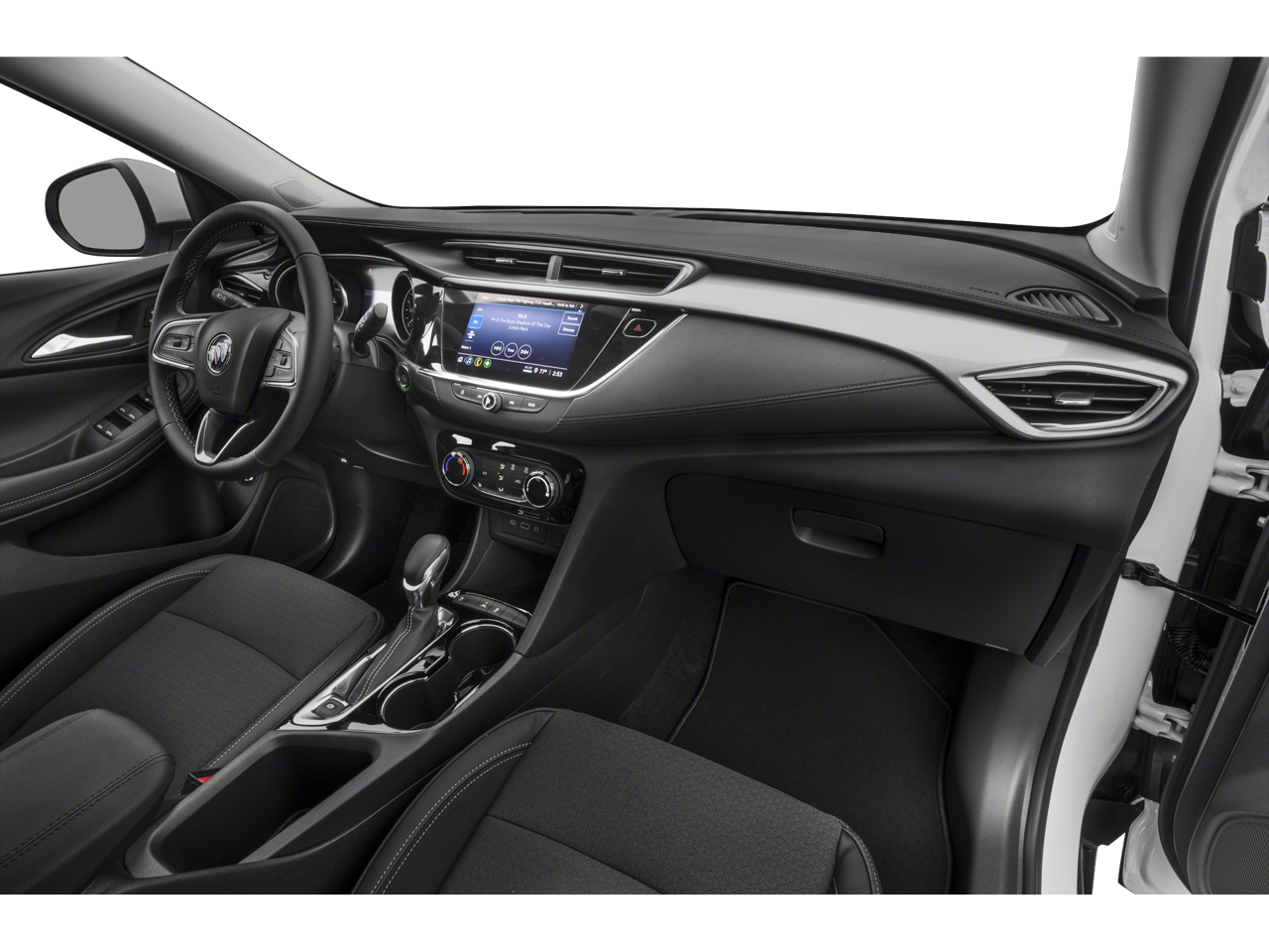 - Sistema de audio, Sistema de infoentretenimiento Buick de 8" en diagonal que incluye pantalla multitáctil, estéreo AM/FM, streaming de audio Bluetooth® para música y la mayoría de teléfonos y Apple Carplay inalámbrico/Android Auto inalámbrico para teléfonos compatibles.