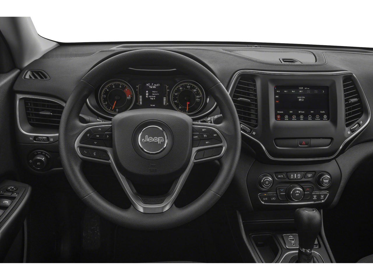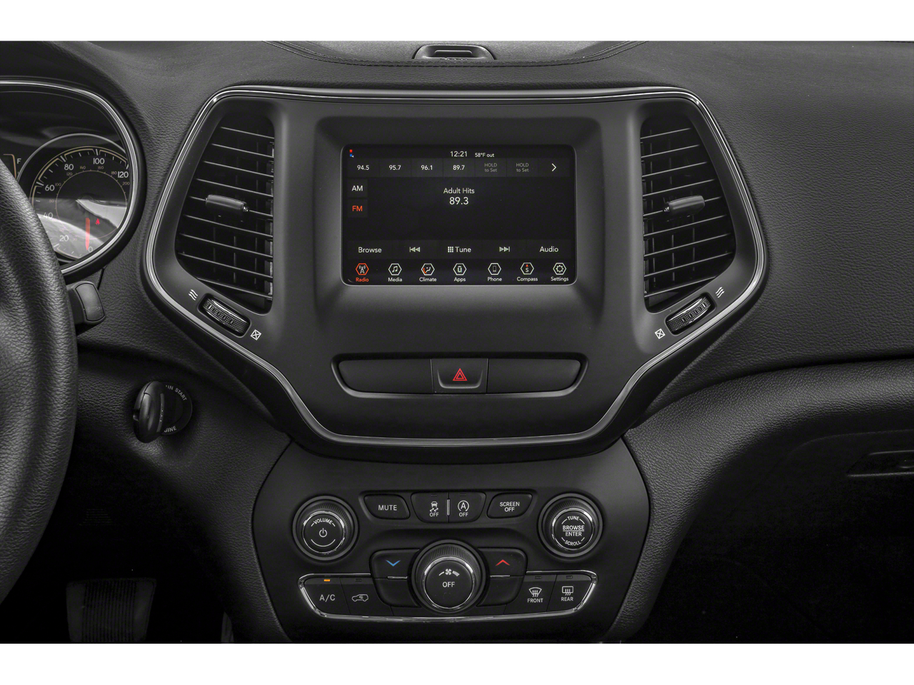 - Radio con buscador, reloj, control de volumen con compensación de velocidad, toma auxiliar de entrada de audio, mandos en el volante, activación por voz, sistema de datos por radio y control de memoria externa Uconnect.
