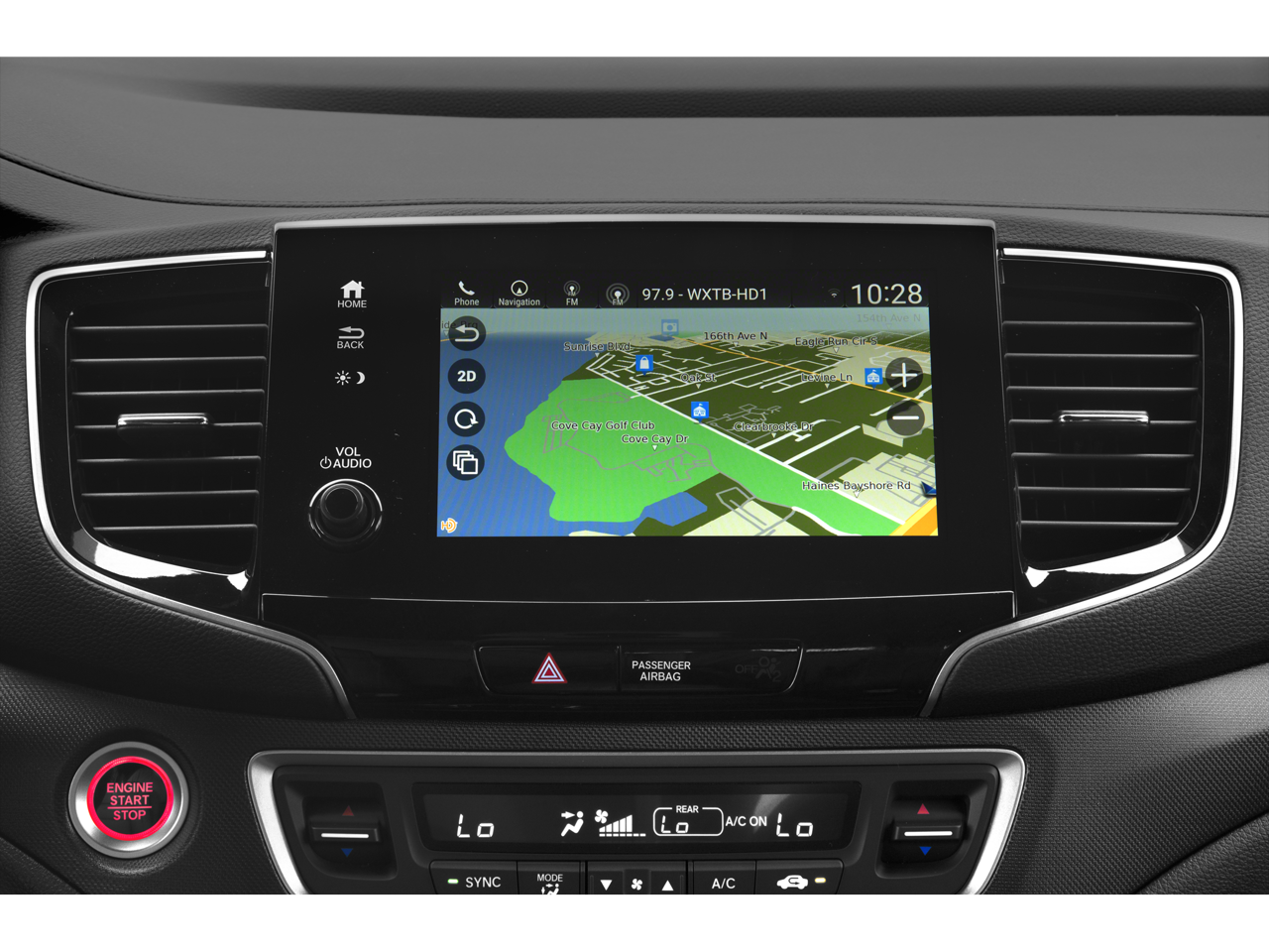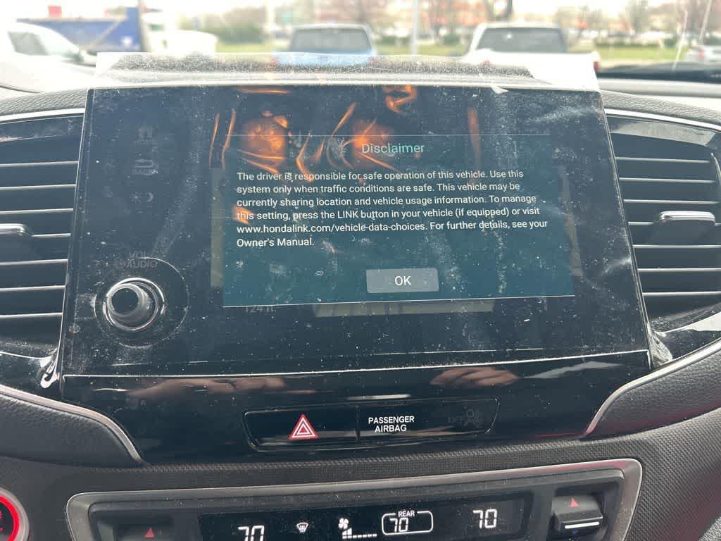 - Radio: sistema de audio de 215 vatios —incluye: 7 altavoces, subwoofer, Bluetooth® HandsFreeLink y transmisión de audio, toma de entrada MP3/auxiliar, sistema de datos de radio (RDS), compensación de volumen sensible a la velocidad (SVC), puerto de carga USB de 2,5 amperios (1 puerto en la consola central/2 puertos en la segunda fila), pantalla de audio de 8" con pantalla táctil de alta resolución y ajustes personalizables, HondaLink, compatibilidad con el mando a distancia CabinControl, integración con Apple CarPlay, integración con Android Auto, función de mensajes de texto SMS, SiriusXM (SiriusXM requiere una suscripción tras cualquier periodo de prueba; si decide continuar con el servicio de SiriusXM al finalizar su suscripción de prueba, el plan que elija se renovará automáticamente y se facturará según las tarifas vigentes en ese momento hasta que llame a SiriusXM al 1-866-635-2349 para cancelarlo; consulte nuestro acuerdo con el cliente para conocer los términos completos en www.siriusxm.com, Las tarifas y la programación están sujetas a cambios. Disponible en los 48 estados contiguos de EE. UU. y en D.C. SiriusXM y todas las marcas y logotipos relacionados son marcas comerciales de SiriusXM Radio Inc.), radio HD, interfaz USB de 2,5 amperios para smartphone/audio (1 puerto en la consola delantera), cargador inalámbrico para teléfono y sistema de navegación Honda con conexión por satélite, reconocimiento de voz y tráfico digital HD de Honda