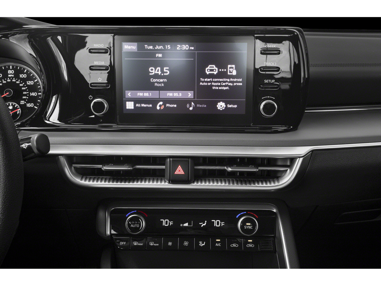 - Radio: Sistema de audio AM/FM/MP3 - incluye: 6 altavoces, pantalla de 10,25 pulgadas, navegación, telemática, radio por satélite, radio HD, puertos USB, tecnología inalámbrica Bluetooth®, reconocimiento de voz, Android Auto y Apple CarPlay con cable.