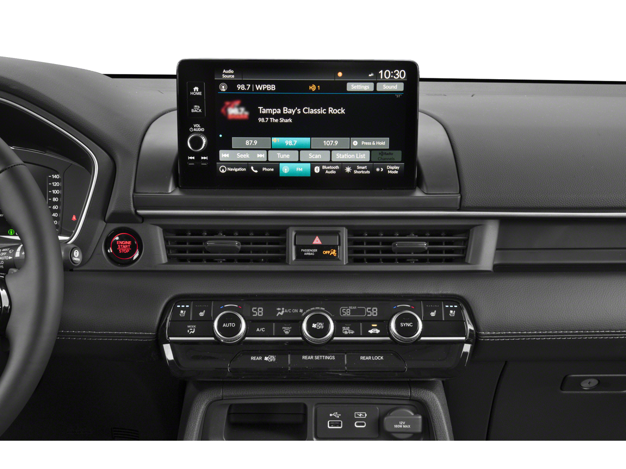 - Radio: Bose Premium Sound System -inc: 12 altavoces c/subwoofer, pantalla táctil en color de 9", Bluetooth® HandsFreeLink y streaming de audio, sistema de datos de radio (RDS), compensación de volumen sensible a la velocidad (SVC), toma de corriente delantera de 12 voltios, compatibilidad inalámbrica con Apple CarPlay y Android Auto, capacidad de punto de acceso Wi-Fi, cargador de teléfono inalámbrico Qi, función de mensajes de texto SMS, SiriusXM (SiriusXM requiere una suscripción después de cualquier período de prueba, Si decide continuar con su servicio SiriusXM al final de su suscripción de prueba, el plan que elija se renovará automáticamente y se facturará a las tarifas vigentes en ese momento hasta que llame a SiriusXM al 1-866-635-2349 para cancelar, Consulte nuestro acuerdo de cliente para conocer los términos completos en www.siriusxm.com, Tarifas y programación sujetas a cambios, Disponible en los 48 Estados Unidos contiguos y D.C, SiriusXM y todas las marcas y logotipos relacionados son marcas comerciales de SiriusXM Radio Inc.), HD Radio, puerto de interfaz de audio/smartphone USB tipo A de 2,5 amperios en la consola delantera, puerto de carga USB tipo C de 3,0 amperios en la consola delantera, sistema de navegación por satélite de Honda con reconocimiento de voz y tráfico en tiempo real de Honda (el sistema de navegación por satélite de Honda funciona en Estados Unidos (sin incluir territorios, excepto Puerto Rico) y Canadá, el servicio de tráfico digital HD de Honda solo está disponible en Estados Unidos, excepto Alaska, consulte a su concesionario Honda para obtener más información.), servicios de suscripción HondaLink (pruebas gratuitas de seguridad durante 1 año y una prueba remota/de conserjería durante 3 meses; es necesaria la inscripción para acceder a la prueba remota/de conserjería y para acceder a determinadas funciones de seguridad; al final de cada periodo de prueba, es necesario adquirir una suscripción para continuar con los servicios respectivos), audio multizona y sistema de megafonía CabinTalk para el automóvil.