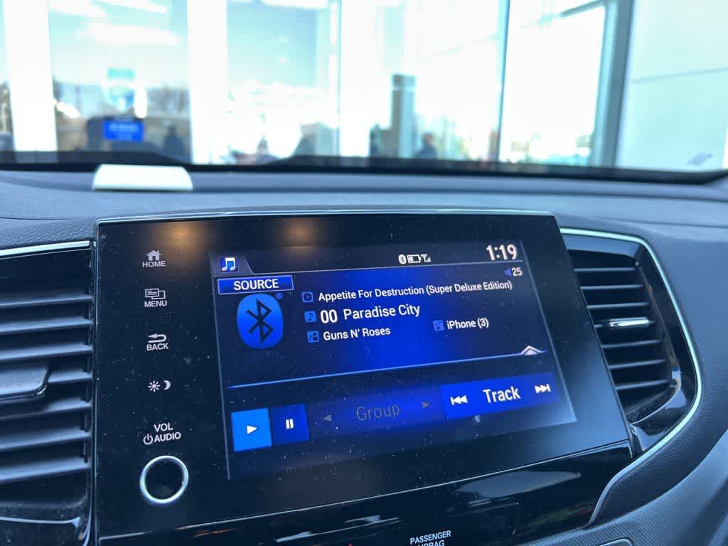 - Radio: Sistema de audio de 215 vatios con 7 altavoces -inc: subwoofer, Bluetooth® streaming audio, MP3/toma de entrada auxiliar, Radio Data System (RDS), Speed-Sensitive Volume Compensation (SVC), 8" display audio w/high-resolution electrostatic touch screen and customizable feature settings, Apple CarPlay compatibility, Android Auto compatibility, HondaLink, SMS text message function (Compatible w/select phones w/Bluetooth®, Your wireless carrier's rate plans apply, State or local laws may limit use of texting feature, Only use texting feature when conditions allow you to do so safely.) e interfaz USB de 1,5 amperios para smartphone/audio en la consola delantera (1 puerto)
