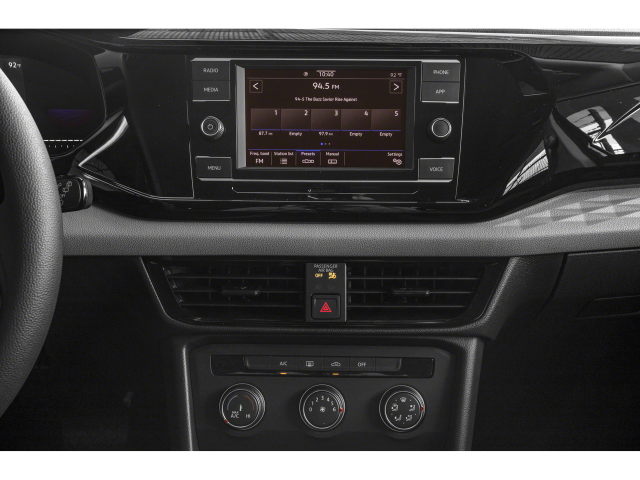 - Radio: Composition Color AM/FM -incluye: pantalla táctil de 6,5", entrada USB, compatibilidad con Wi-Fi 4G LTE integrado en el vehículo (se requiere un plan de datos móviles; incluye periodo de prueba limitado), compatibilidad con los servicios VW Car-Net (las funciones de determinados servicios varían; requiere inscripción o suscripción), conectividad Bluetooth® (para dispositivos compatibles) e integración de smartphones App-Connect (con Apple CarPlay, Android Auto y MirrorLink) a través de USB