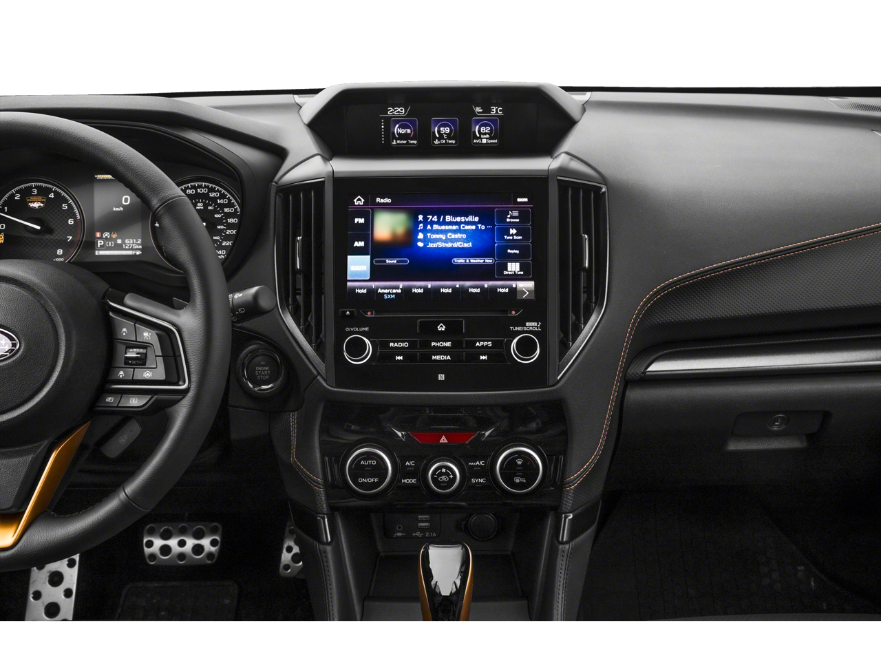 - Radio: Sistema multimedia Plus Subaru STARLINK de 8,0 pulgadas, que incluye: radio AM/FM estéreo HD, pantalla multitáctil de alta resolución con reconocimiento de gestos, controles activados por voz, transmisión de audio por Bluetooth®, conectividad para teléfono manos libres y conectividad para mensajes de texto SMS manos libres (consulte subaru.com para conocer la compatibilidad con teléfonos móviles), comunicación de campo cercano (NFC), compatibilidad con iPod, radio SiriusXM All Access y SiriusXM Travel Link (4 meses de prueba gratuita; se requiere suscripción posterior), integración con smartphones para AHA, Android Auto, Apple CarPlay, Pandora y aplicaciones en la nube de STARLINK (consulte subaru.com para conocer la disponibilidad de las aplicaciones), actualización del sistema de audio por USB y Over The Air (OTA), controles en el volante para el audio y Bluetooth®, 6 altavoces, toma de entrada auxiliar de 3,5 mm y dos puertos USB-A de entrada/carga