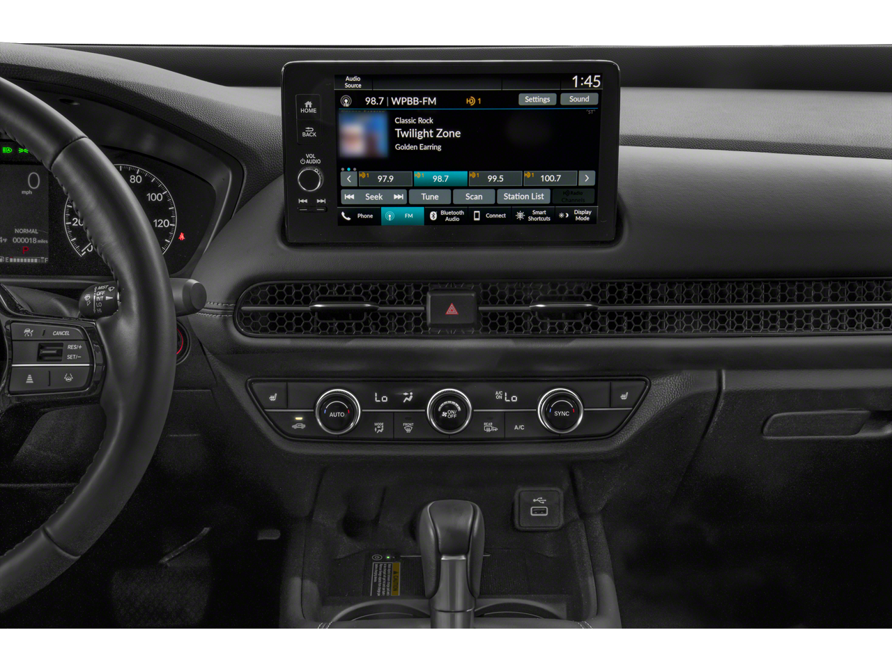 - Radio: sistema de audio de 180 vatios con 8 altavoces, que incluye: pantalla táctil en color de 9 pulgadas, compatibilidad inalámbrica con Apple CarPlay y Android Auto, Bluetooth® HandsFreeLink y transmisión de audio, puerto USB-A de 2,5 amperios para smartphone/audio en la consola delantera, radio HD, cargador inalámbrico para teléfonos compatible con Qi, HondaLink, función de mensajes de texto SMS, sistema de datos de radio (RDS) y compensación de volumen sensible a la velocidad (SVC)